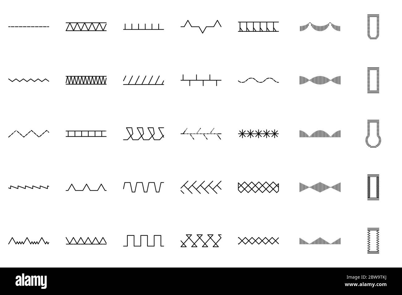 A Set Of Sewing Machine Stitch Icons Black Patterns Vector Illustration Stock Vector Image Art Alamy